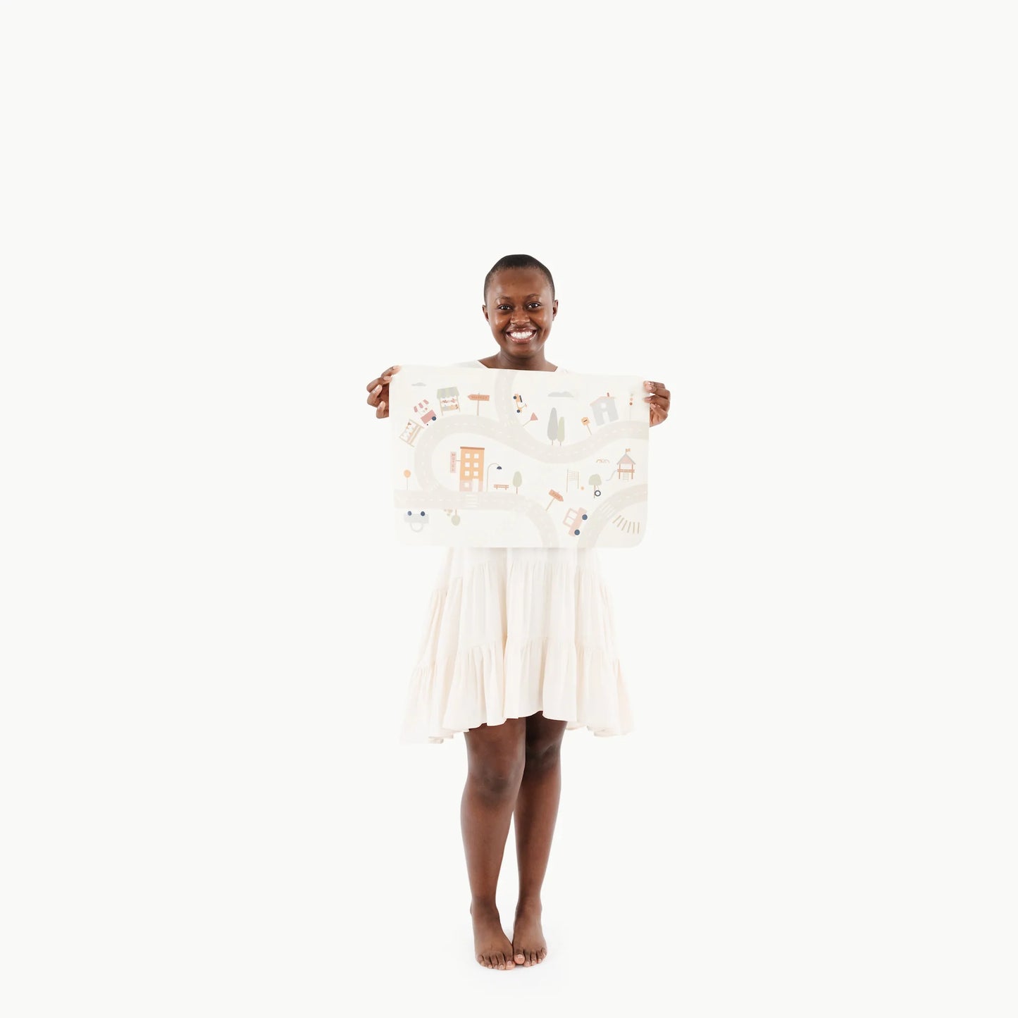 This bonded leather mat makes for great changing mat, placemat for meals or playtime! Protect your table from all kinds of art adventures, from playdough & paint to kinetic sand. Fits in your purse for ultimate portability.