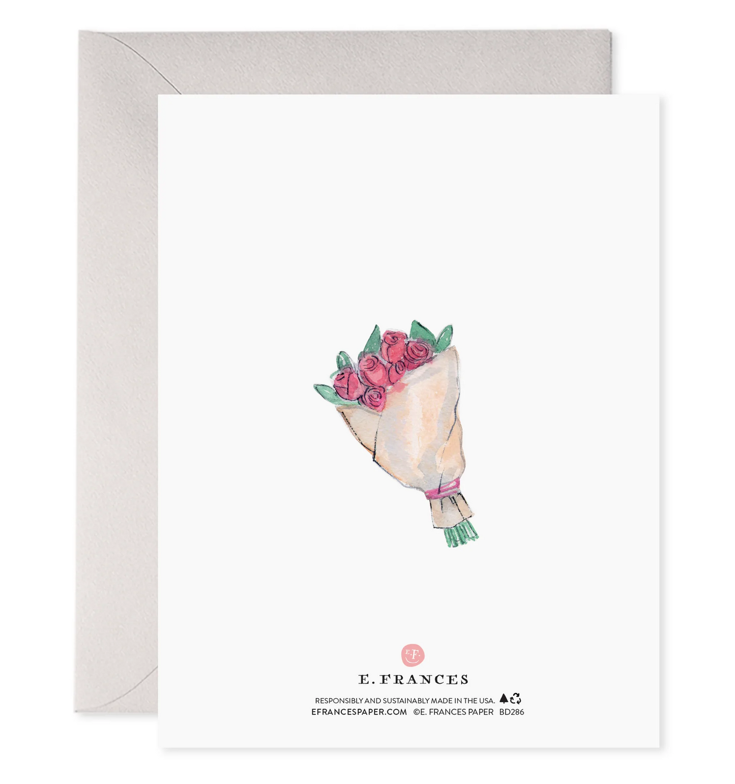 Each E. Frances card begins as an original watercolor painting, and then is printed in brilliant color on luxe, heavyweight paper and kissed with gold foil.