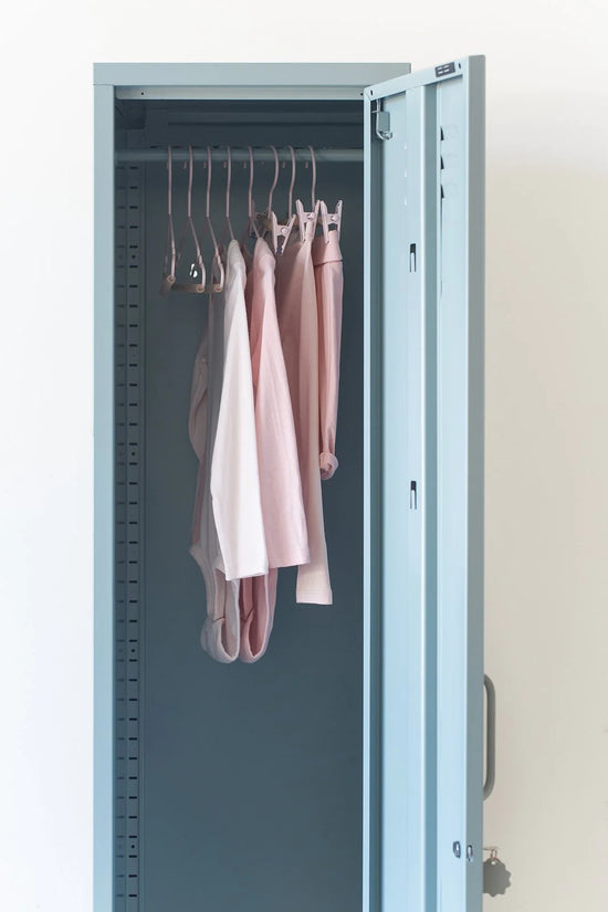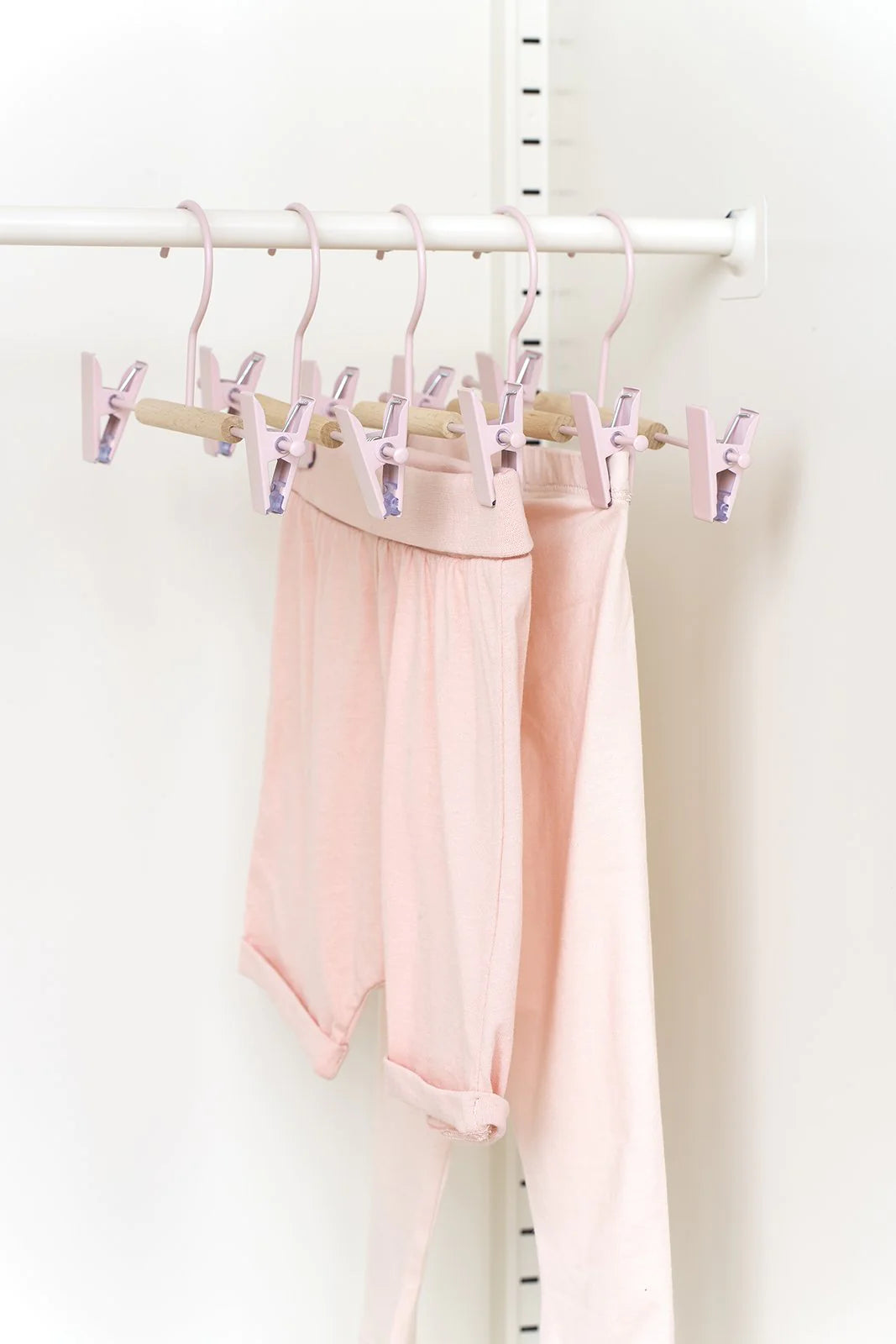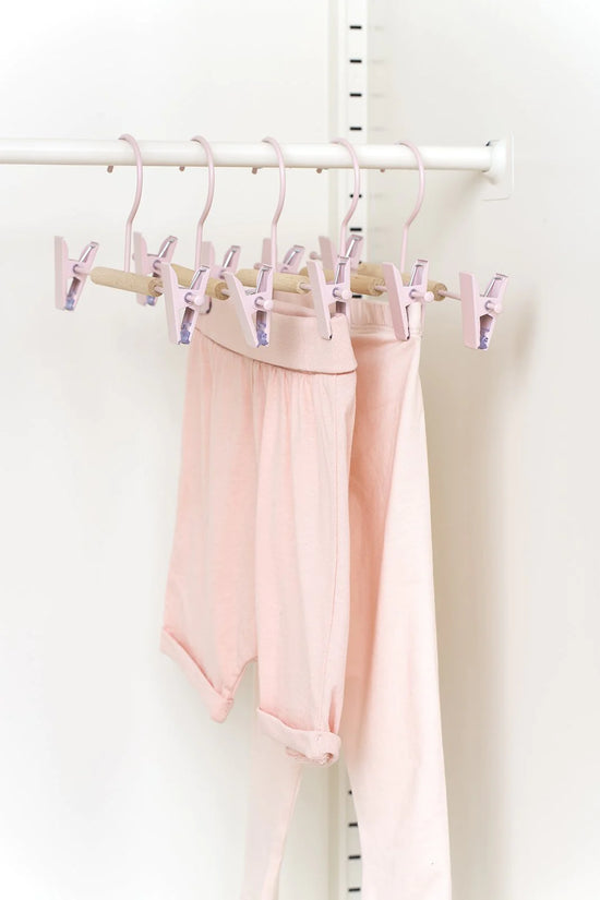 Say hello to the cutest hangers for your little people! Our fancy clip hangers have a smooth matte powder-coated finish, a wooden detail and two clippy clips ready to hold your clothes just right. These adorable mini hangers will fit clothes from teeny baby size all the way up to age ten.
