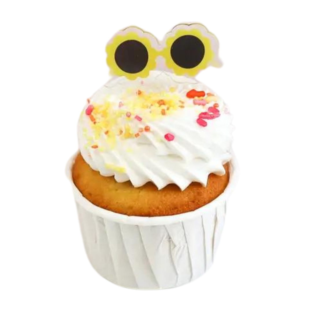 Acrylic cupcake topper set. Six pieces in total - five sunnies in multiple colors, and one 'you are my sunshine' topper.