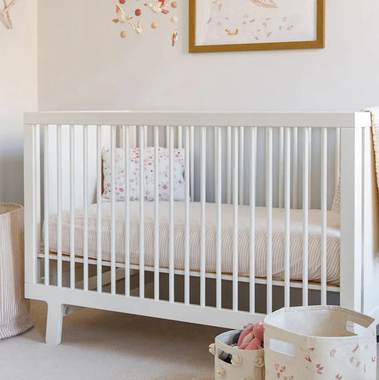 Crafted in brushed organic cotton, this breathable and soft crib sheet will give your little one the perfect night’s sleep. Designed to ensure a safe snug fit, our baby crib sheet fits cots and mattresses up to 52" x 28" x 8" and stay soft wash after wash.