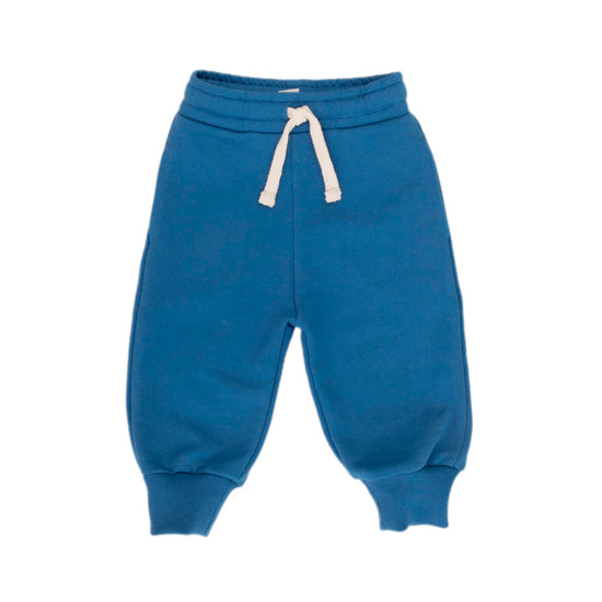 These French terry pants are perfect for children during the fall and winter seasons. In a versatile blue color, they offer both style and warmth. The fabric is thick and durable, providing extra comfort and protection against the cold. Featuring an elastic waistband for easy dressing and a secure fit, these pants are especially popular with new mothers for their convenience. Pair them with any of our pullovers for a complete and cozy look.