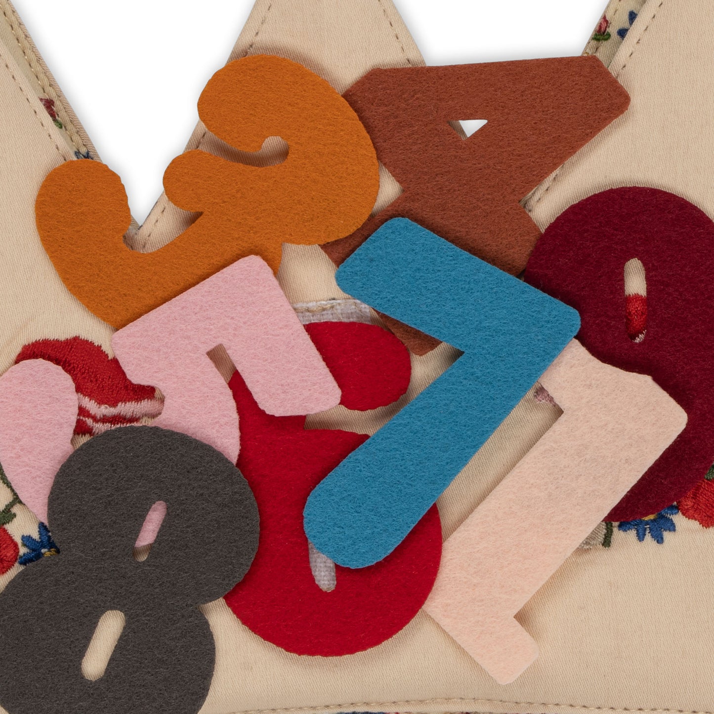 A Birthday crown made in 100% organic cotton, which includes snap on numbers 1-9 for now, and birthday celebrations to come!