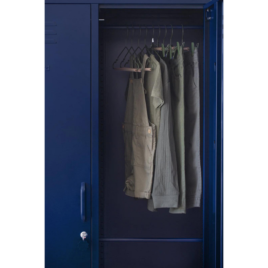 Say hello to the cutest hangers for your little people! Our fancy hangers have a smooth matte powder-coated finish, a wooden detail and a mustard signature 'squiggle' on the sides for added cool factor. These adorable mini hangers will fit clothes from teeny baby size all the way up to age ten.
