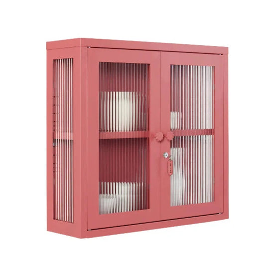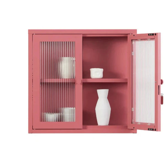 • Inside: An adjustable shelf, lockable doors and fluted glass panels set in a metal frame
