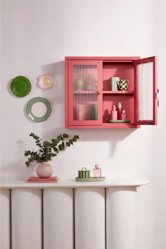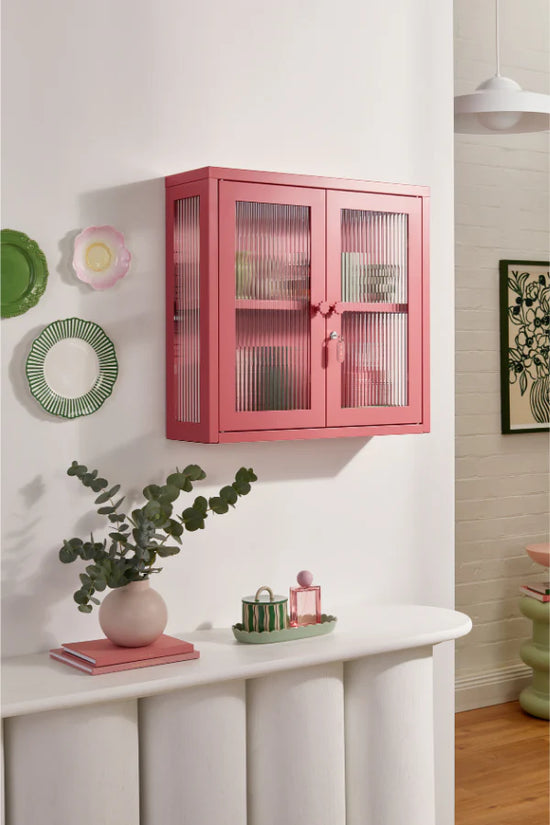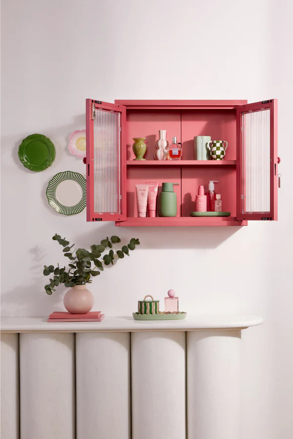 Petite and purposeful, The Kit is your vintage medicine cabinet reimagined! Wall-mounted and a little retro, she's ready to house everything from your keys to your serums to your teacup collection (cute!) With medallion handles and a custom enamel keyring, she's little and lovely and very, very useful.