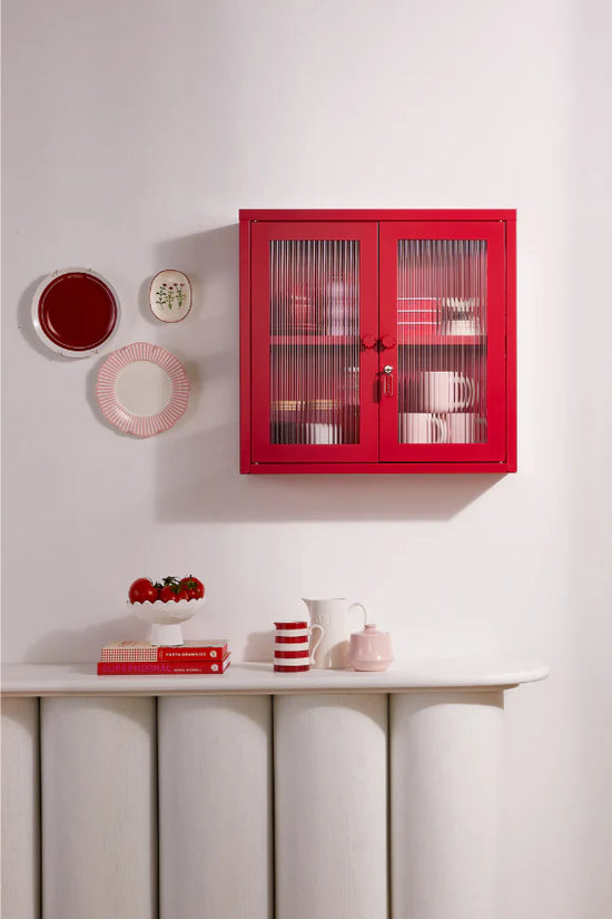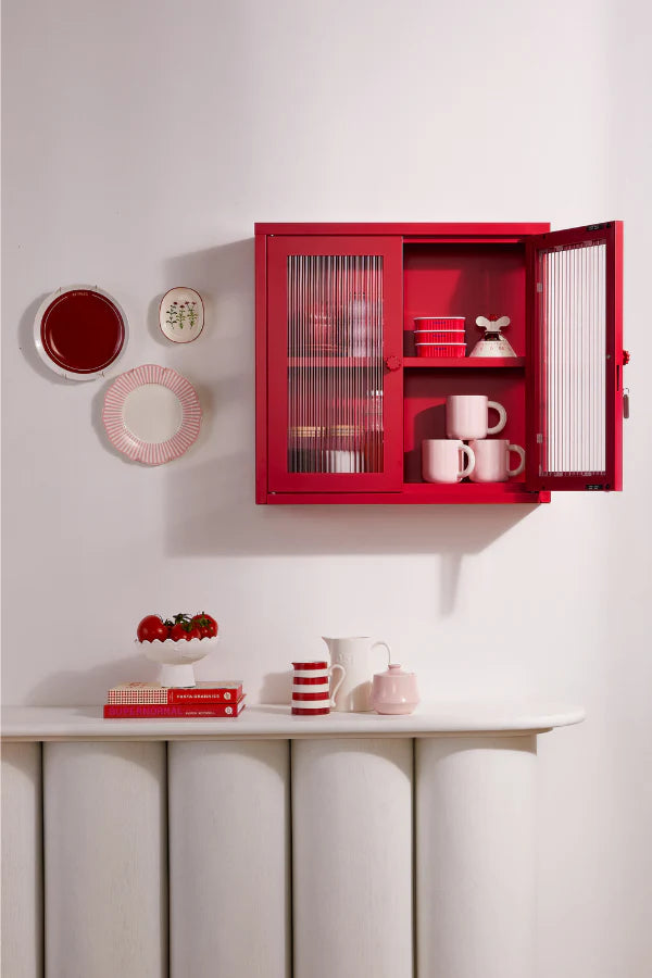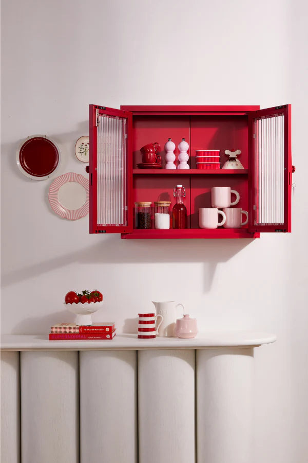 Petite and purposeful, The Kit is your vintage medicine cabinet reimagined! Wall-mounted and a little retro, she's ready to house everything from your keys to your serums to your teacup collection (cute!) With medallion handles and a custom enamel keyring, she's little and lovely and very, very useful.