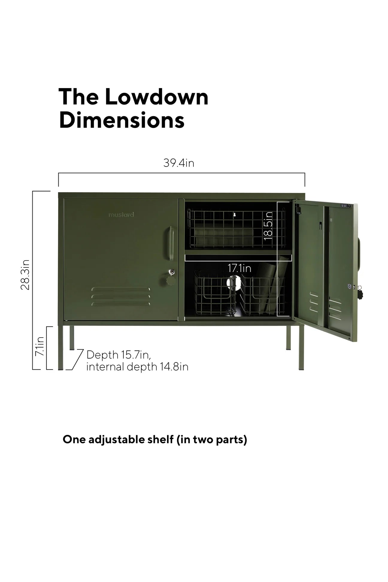 The Lowdown locker is your new favorite console, tv station or office storage. Versatility is her thing. She’s perfectly proportioned and ready for home, work or play.