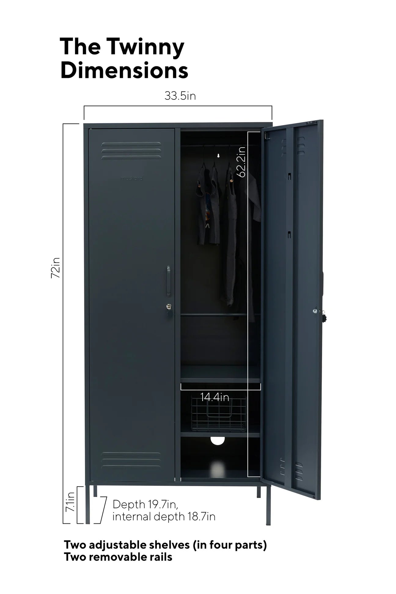 How does The Twinny compare? It’s the same width as The Midi + the same height as The Skinny, but a little bit deeper for extra hanger space!